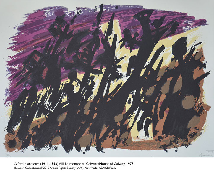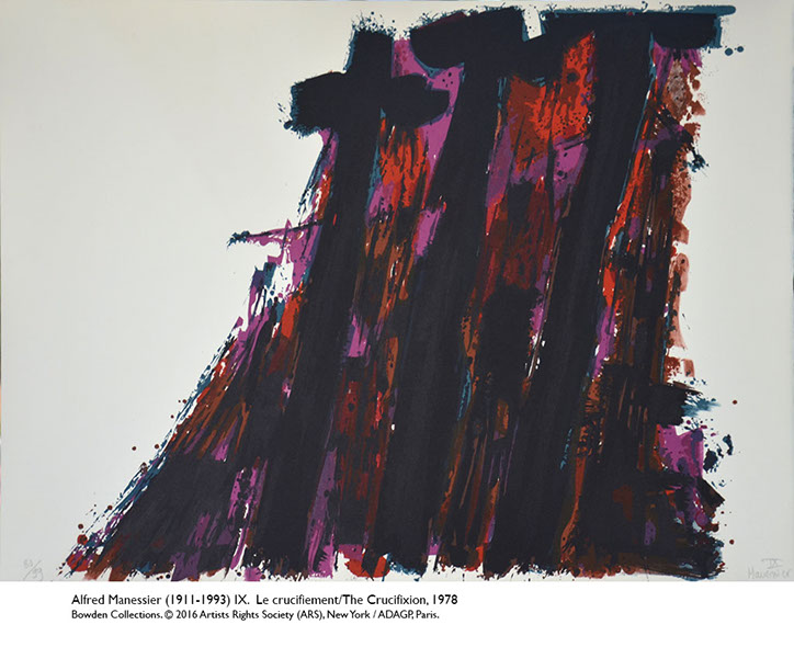 Bowden Collections offers a variety of traveling exhibitions available to museums, churches, colleges and seminaries: several feature the work of important historical artists such as Georges Rouault, Marc Chagall, Ottos Dix and Alfred Manessier; others explore topics related to the Bible. A packet containing everything needed to mount the exhibition with files for labels, itemized lists, a brochure or flyer in PDF format, high-resolution digital files of art in the exhibition, and shipping information is provided. Venues are responsible for the rental fee and shipping, usually to the following venue.