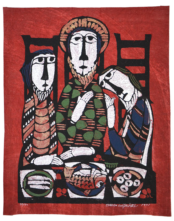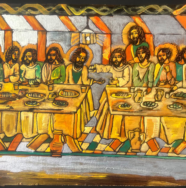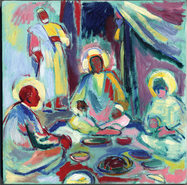 This exhibition takes the viewer on a journey through Scripture beginning with an engraving of Melchizedek serving Abraham bread and wine, continues with a Russian icon of Abraham entertaining angels, as well as a painting by Bernard Gussow of the Passover Meal. The New Testament is no less filled with His people eating together: The Wedding at Cana, Feeding of the Five Thousand, The Last Supper and the Supper at Emmaus. All are represented in this exhibition.
