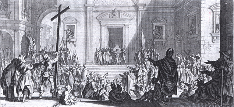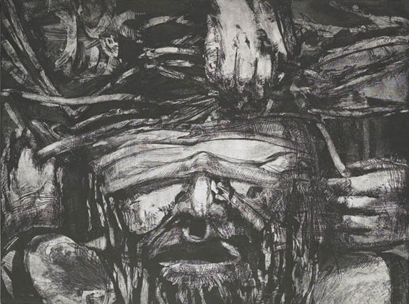 Two pieces in this show by Jacques Callot and Cornelius Cort show Christ being presented by Pilate to the crowd of people in the street. Otto Dix’s Ecce Homo imagines the crowd seething with anger, pointing fingers and taunting Jesus.