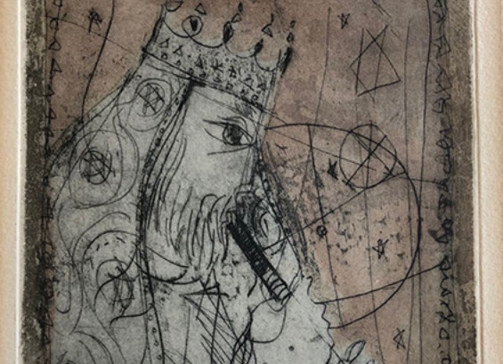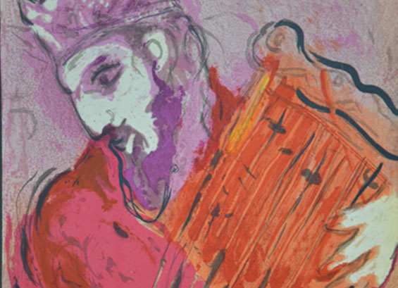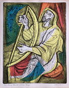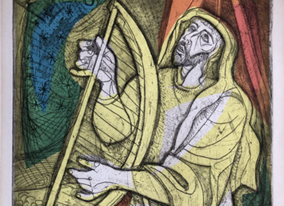 Nissen Engel was born in Israel but moved to New York City in 1965. He had an intimate acquaintance with the Scriptures. This delicate etching invites us to envision David playing a flute or wind instrument, perhaps recalling the times he spent time making music alone in the fields as he watched over his father’s sheep.