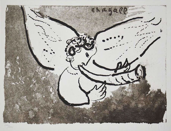 It is impossible to imagine the church without music. The monastic tradition used Gregorian chant and choral singing to enhance worship as seen in the elaborate Bifolium Antiphonal Leaves that a choir used in the 16th and 17th century. De Hooghe’s 18th engraving of the title page to the book of Psalms shows how the Dutch imagined music in biblical times. Not only the church, but also the Jewish community applauds music’s significance as seen in Rosenstein’s serigraph, Sing to the Lord a New Song and Marc Chagall’s two lithographs, one of David playing the harp and the other of an angel with a horn .