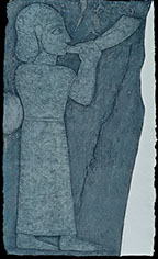 This collagraph uses an image found in Carchamesh of an 8th or 9th century BCE Hittite horn player.