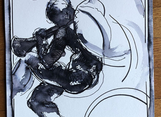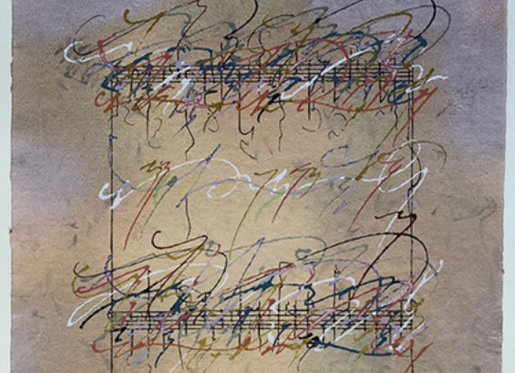 Uzilevsky is known for his fluid interpretations of musical scores with flowing calligraphic lines, notes, accidentals, and other imagined elements. Aside from being an artist this California artist was also a musician.