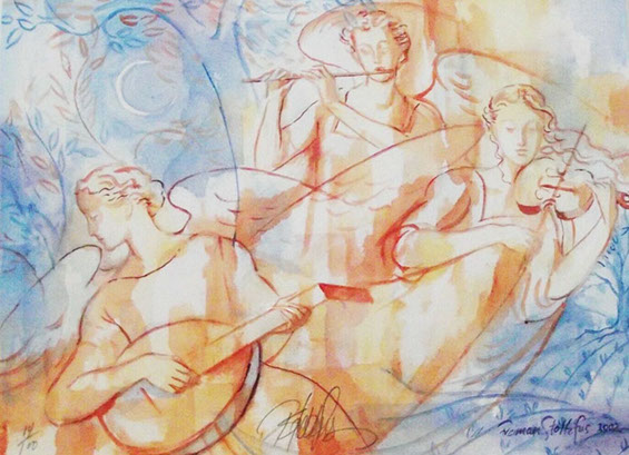 18. Musical Angels, lithograph, Freiman Stoltzfus
