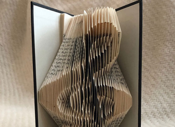 Cleverly folded pages of this book combine to form a treble cleft as the book stands on end.