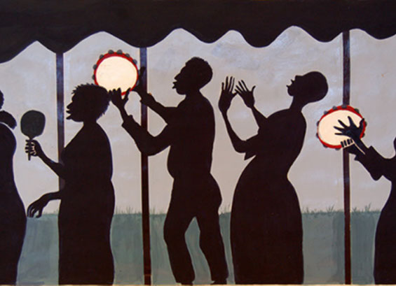 Barbara Zuber’s depiction of a local tent meeting near Albany, NY, celebrates the vibrant black tradition of dancing and singing with jubilation and joy…all join in the song. Barbara is a Black American and was trained as an artist at Yale University.