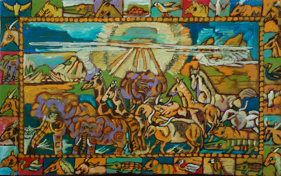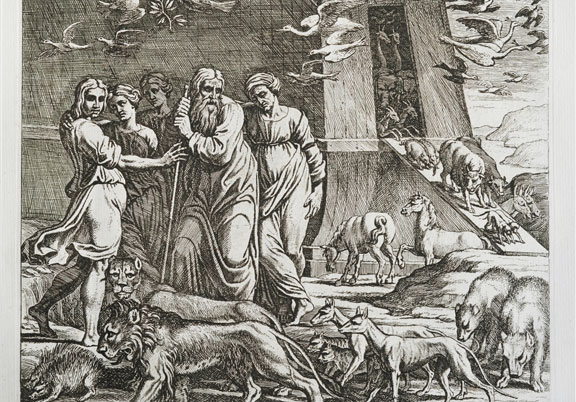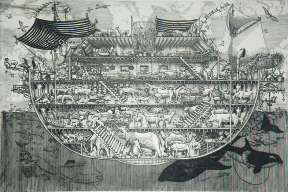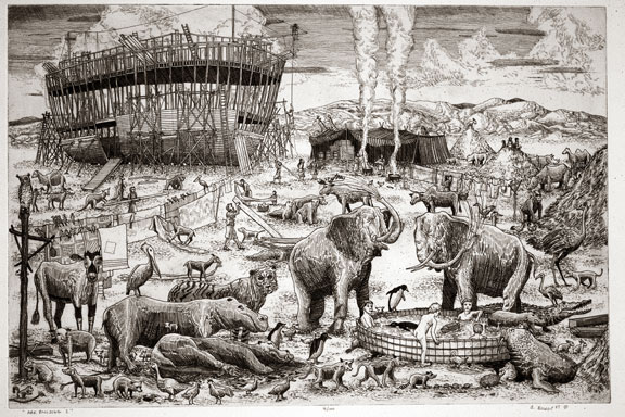 Imagined with a vast variety of living things parading into the ark two-by-two,
