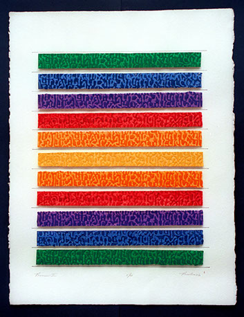 In route to the chapel, I led them through our Hallway Gallery. In the Hallway Gallery was our featured exhibit, "The Rain Came Down: Noah and the Ark." The students took quite a bit of time to carefully study these works. Shortly after the students left, they returned bringing several more friends to observe the exhibit and windows. A little while later they brought in two finely dressed older women wearing Saris. Apparently the visiting mothers of the Students from India. All left wearing big smiles. The next day, I shared this enthusiastic response with Mark Riddles, Minister of Music and Fine Arts. He responded by pointing out that every culture, region and religion throughout time and history has a flood story.