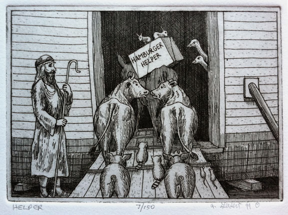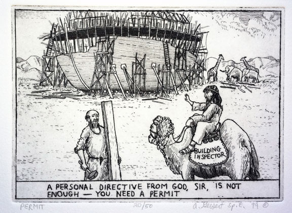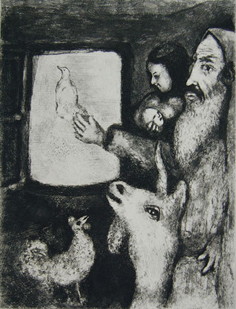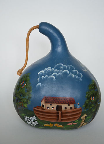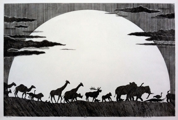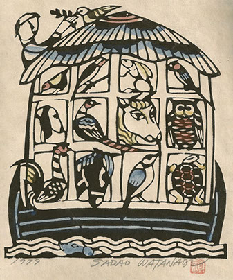 some of which include: etchings by Marc Chagall, Ben Zion and Arthur Geisert, a 17th century engraving, paintings by outsider artists Rudolph Bostic and Dorethy Gorham, two molas from the San Blas Islands off Panama, a stencil print by Japanese artist Sadao Watanabe, and charming wood sculpted Noah’s arks. Together they promise the viewer a delightful few minutes of exploring anew the beloved story of Noah and the Ark.