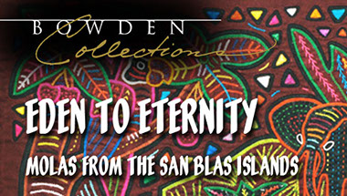 This show has 40 stunning molas from the San Blas Islands off the coast of Panama that tell the story of the Bible, from the Garden of Eden to the Ascension of Jesus into Heaven. Molas are panels of reversed embroidery originally applied to the front and back of the Cuna women's blouses. Each mola is a beautifully designed interpretation of biblical stories with whimsical treatments and tender insights.
