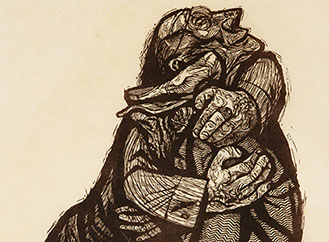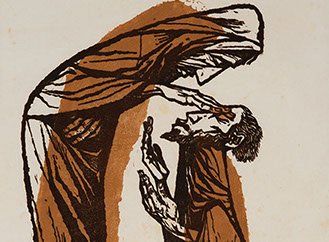 He is known for his many Prodigal Son images, two of which are included in this show. His Return of the Prodigal shows the son literally smothered and melted into the arms of his loving father.