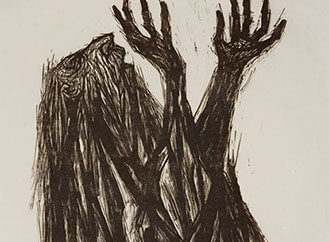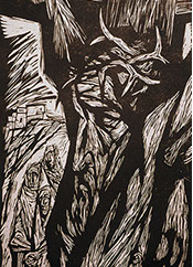 Hodgell’s visceral images of the Passion challenge the viewer to see anew the horrendous events surrounding the Crucifixion. Each expressive interpretation, the twisted and exaggerated body of Christ under the pain of his death, conveys the emotional duress and bring us personally to the events surrounding the Crucifixion.