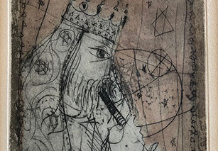 This etching and aquatint of King David and His Harp depicts a musician totally absorbed as he plays and sings a psalm. Amen was a prolific artist who worked in oils and various printing techniques. Most of his subjects were biblical characters and studies of people.