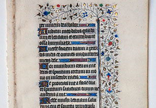 This illuminated music manuscript was created using paper so dates later than those on vellum. The text is from the Vulgate that was the liturgical language of the church.