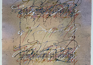 Uzilevsky is known for his fluid interpretations of musical scores with flowing calligraphic lines, notes, accidentals, and other imagined elements. Aside from being an artist this California artist was also a musician.
