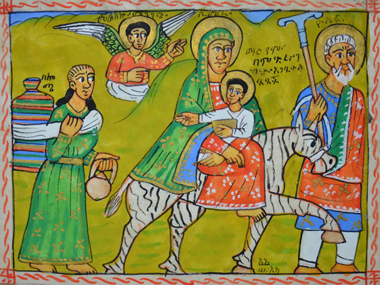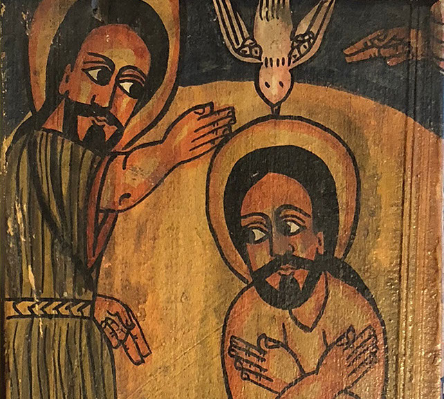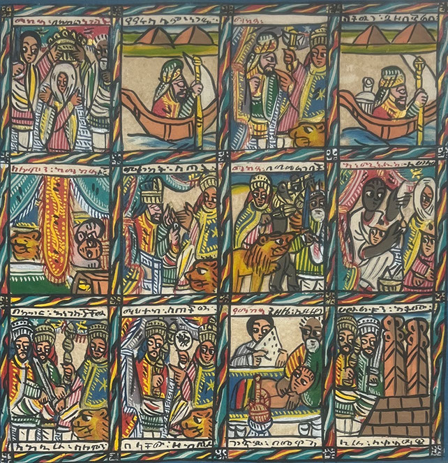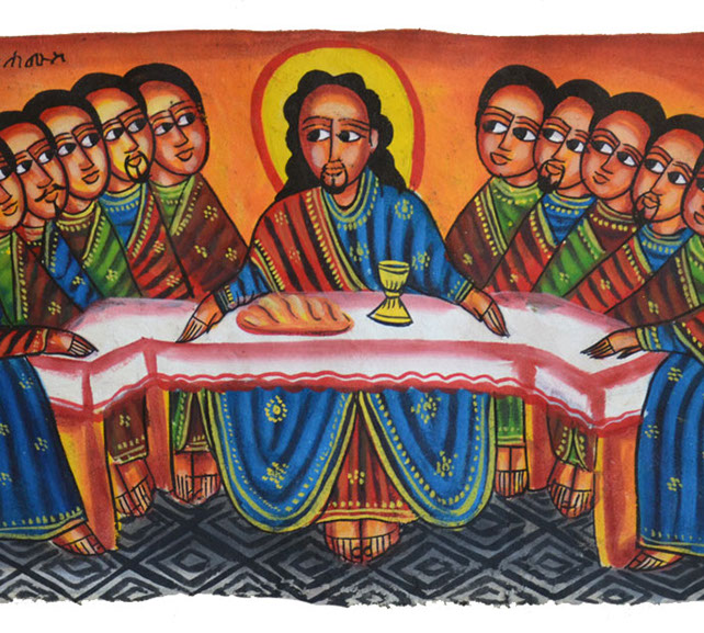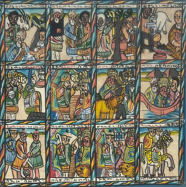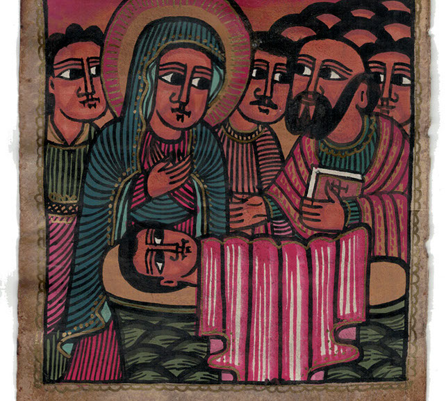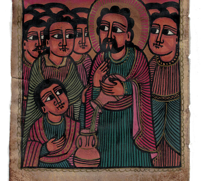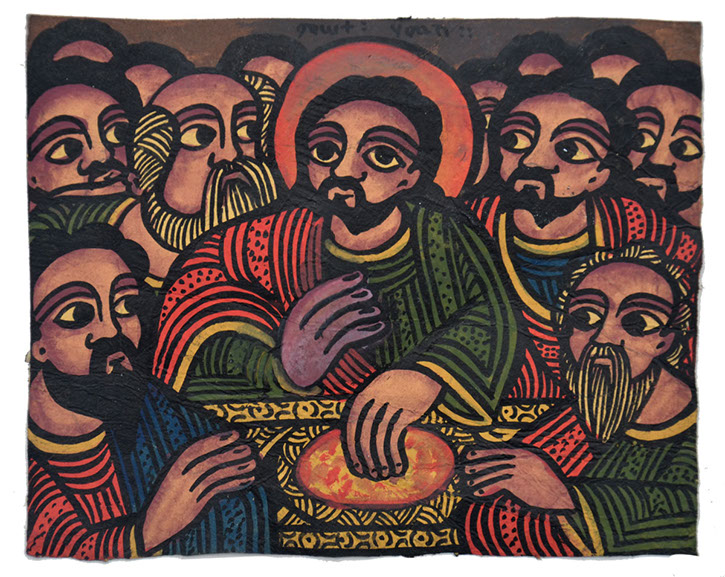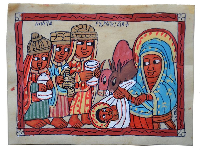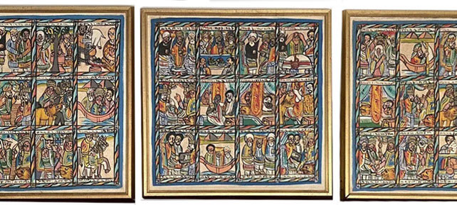 The purpose of Ethiopian art is use color to portray the drama of the Gospels. These icons are made of wood or leather panels, and are used as personal altars. From the Annunciation to the Wisemen at the Nativity, Christ’s Baptism, The Wedding at Cana through the many events of his Passion, the Ethiopian artist has focused on the life of Jesus.