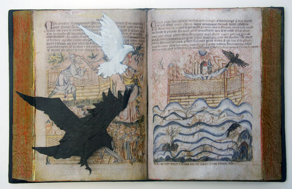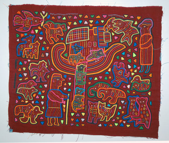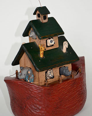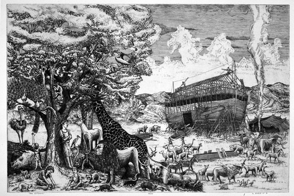some of which include: etchings by Marc Chagall, Ben Zion and Arthur Geisert, a 17th century engraving, paintings by outsider artists Rudolph Bostic and Dorethy Gorham, two molas from the San Blas Islands off Panama, a stencil print by Japanese artist Sadao Watanabe, and charming wood sculpted Noah’s arks. Together they promise the viewer a delightful few minutes of exploring anew the beloved story of Noah and the Ark.