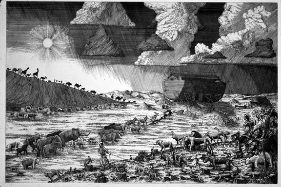 Imagined with a vast variety of living things parading into the ark two-by-two,