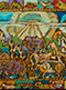 In route to the chapel, I led them through our Hallway Gallery. In the Hallway Gallery was our featured exhibit, "The Rain Came Down: Noah and the Ark." The students took quite a bit of time to carefully study these works. Shortly after the students left, they returned bringing several more friends to observe the exhibit and windows. A little while later they brought in two finely dressed older women wearing Saris. Apparently the visiting mothers of the Students from India. All left wearing big smiles. The next day, I shared this enthusiastic response with Mark Riddles, Minister of Music and Fine Arts. He responded by pointing out that every culture, region and religion throughout time and history has a flood story.