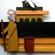 some of which include: etchings by Marc Chagall, Ben Zion and Arthur Geisert, a 17th century engraving, paintings by outsider artists Rudolph Bostic and Dorethy Gorham, two molas from the San Blas Islands off Panama, a stencil print by Japanese artist Sadao Watanabe, and charming wood sculpted Noah’s arks. Together they promise the viewer a delightful few minutes of exploring anew the beloved story of Noah and the Ark.